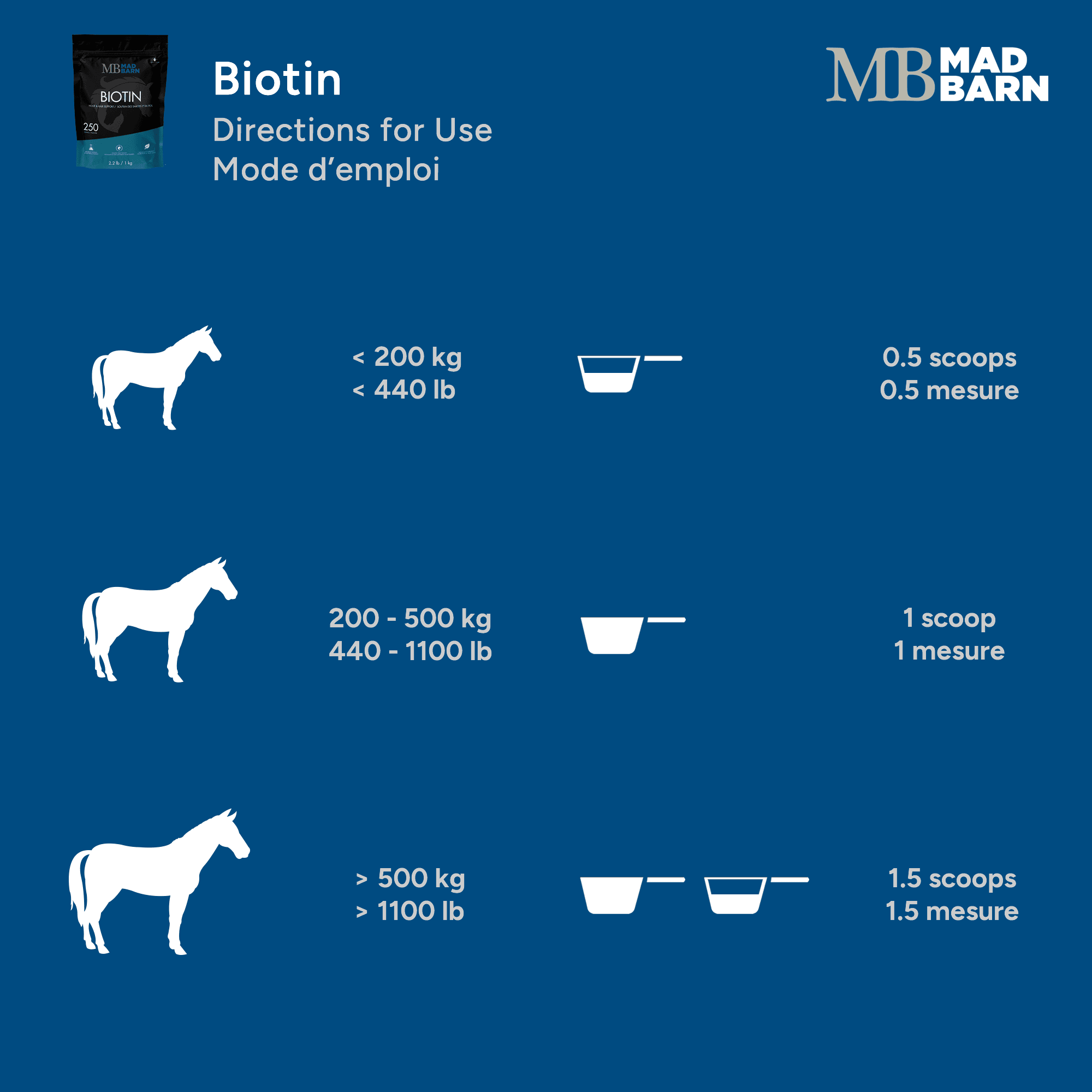 Mad Barn Supplément de Biotine en poudre pour Cheval 1kg